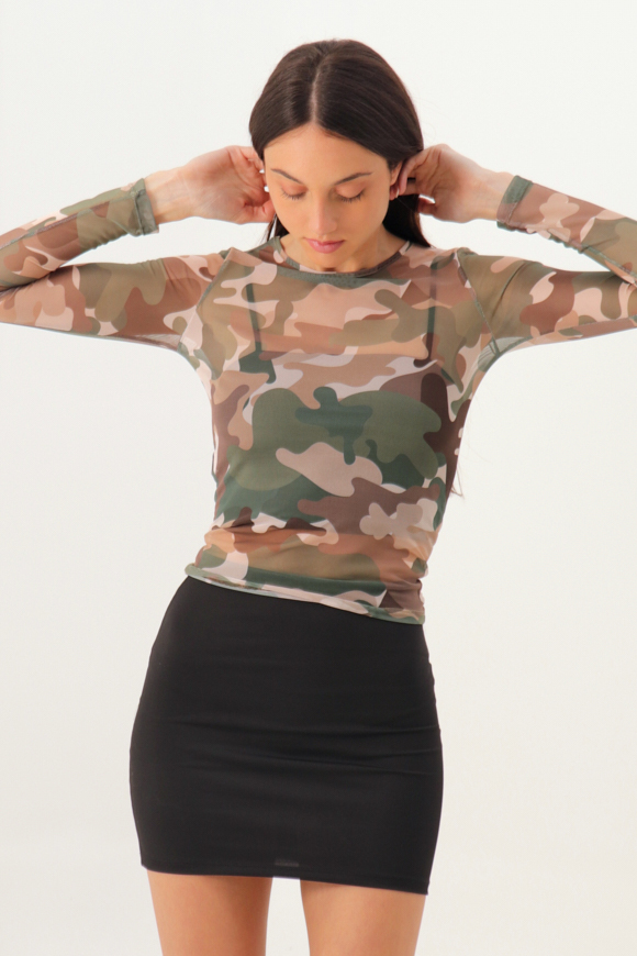 REMERA BASICA TUL ESTAMPADO MANGA LARGA CON TERMINACION RULOTE