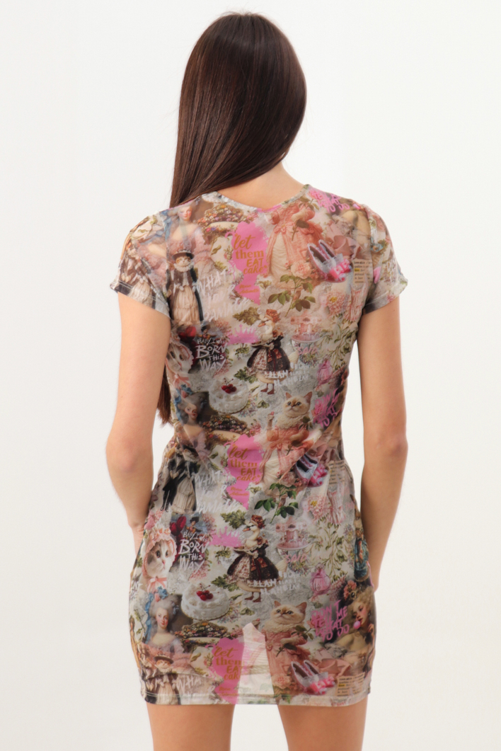 Vestido de tul manga corta con estampa de Maria Antonieta