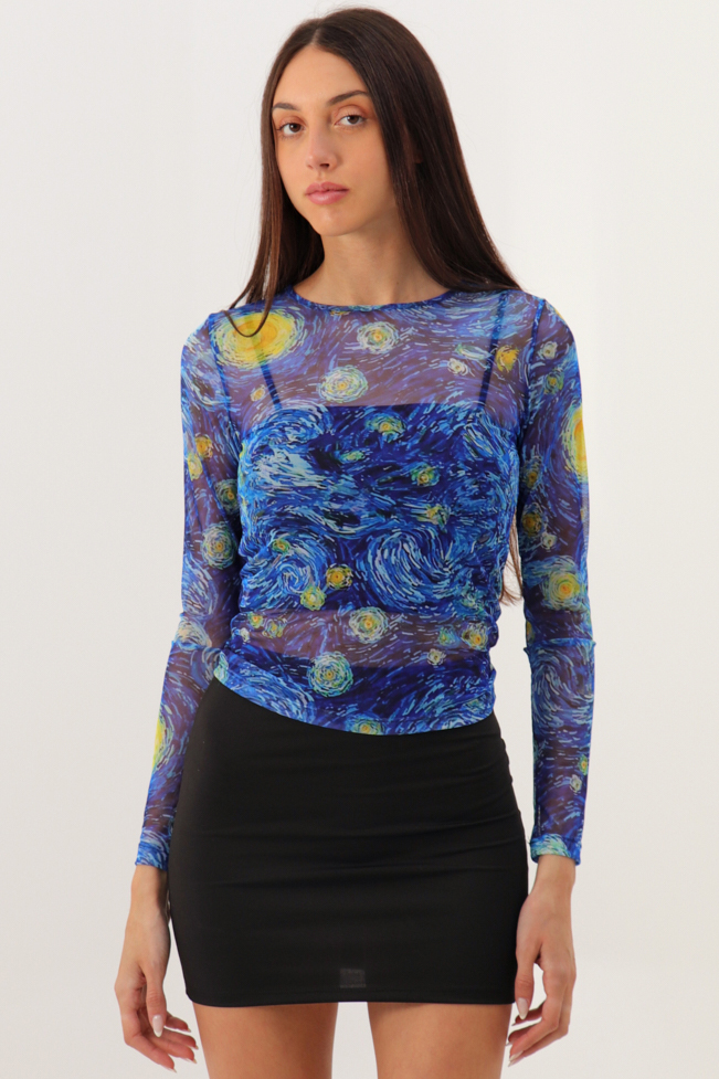 REMERA MANGA LARGA ESTAMPADA CONTERMINACION RULOTE
