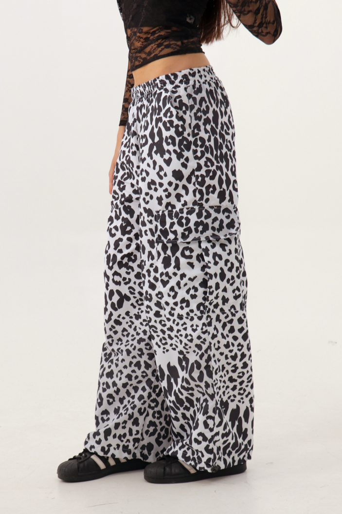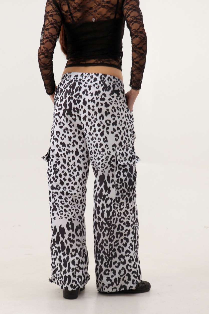 Pantalon cargo estampado animal print blanco con elastico para regular